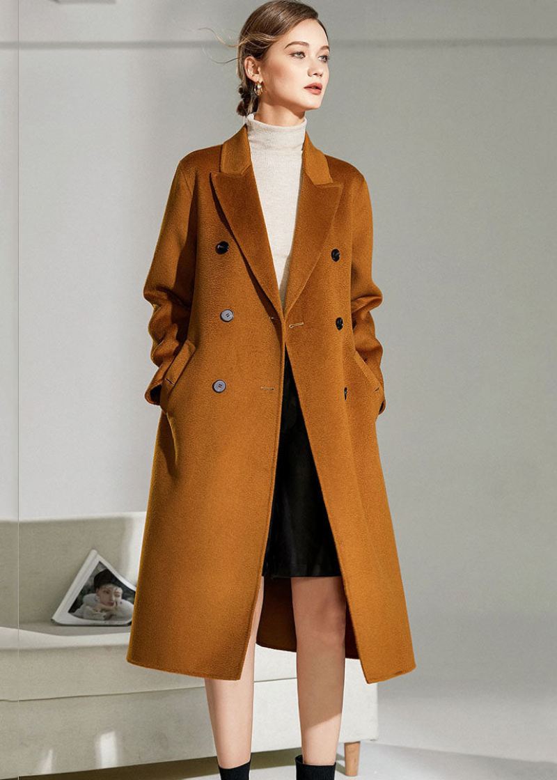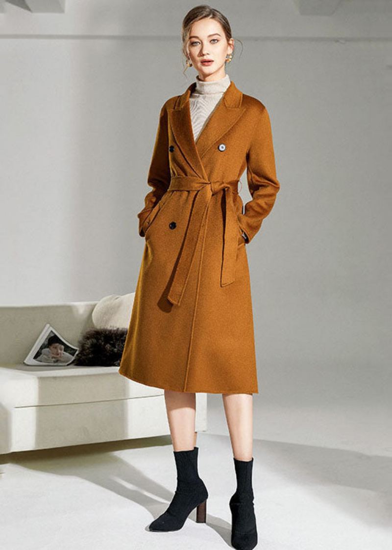 Boho Caramel Peter Pan Krage Sashes Ull Dobbel Breasted Coat Vinter