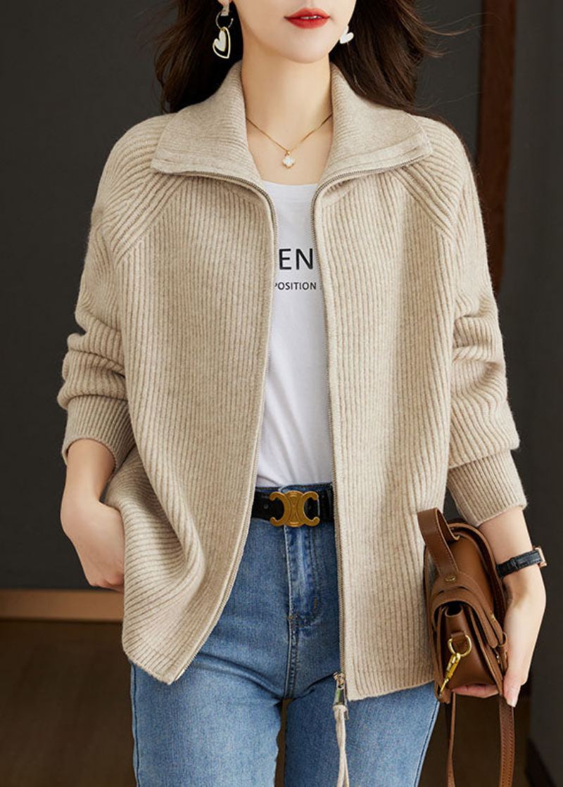 Enkel Aprikos Peter Pan Krage Glidelås Patchwork Ull Frakk Høst