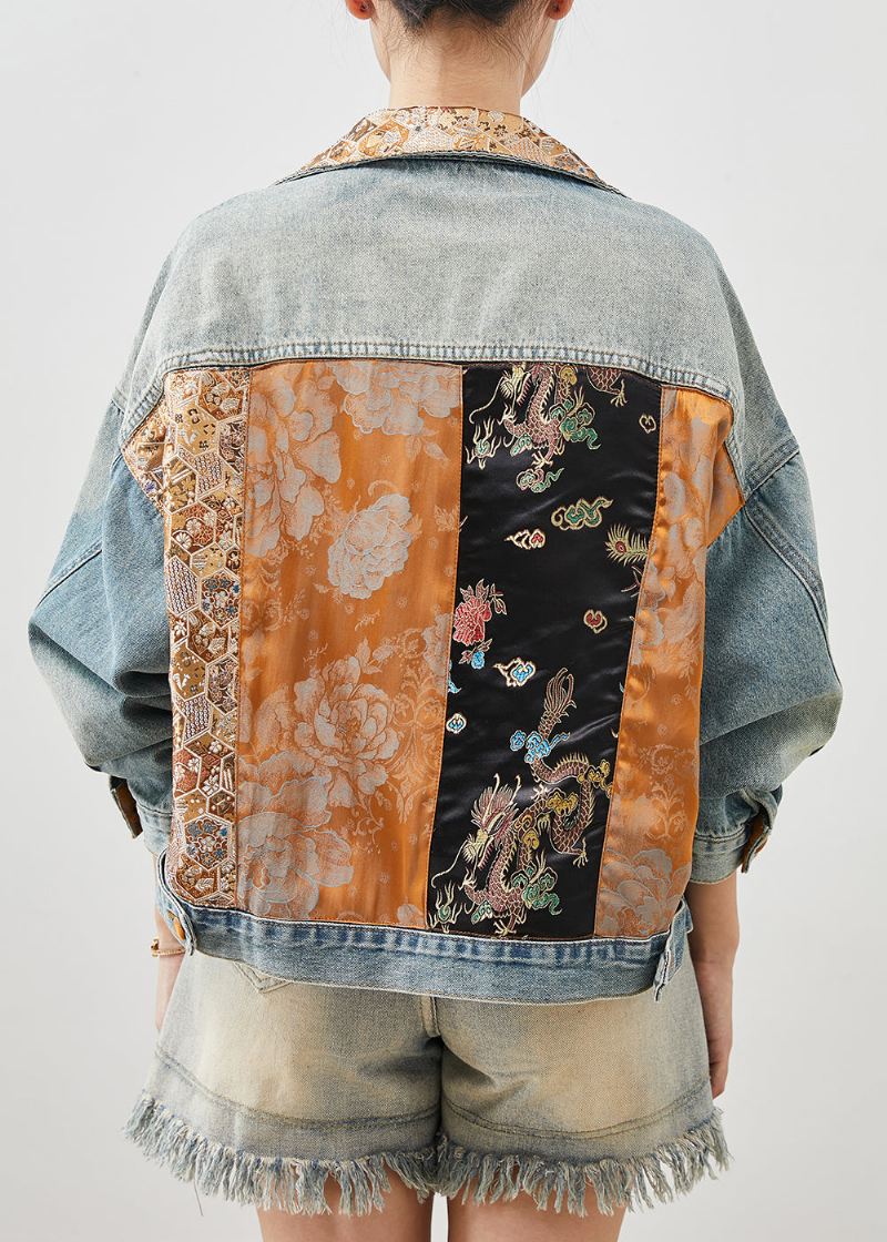 Fransk Blå Dusk Patchwork Dongerijakke Vår