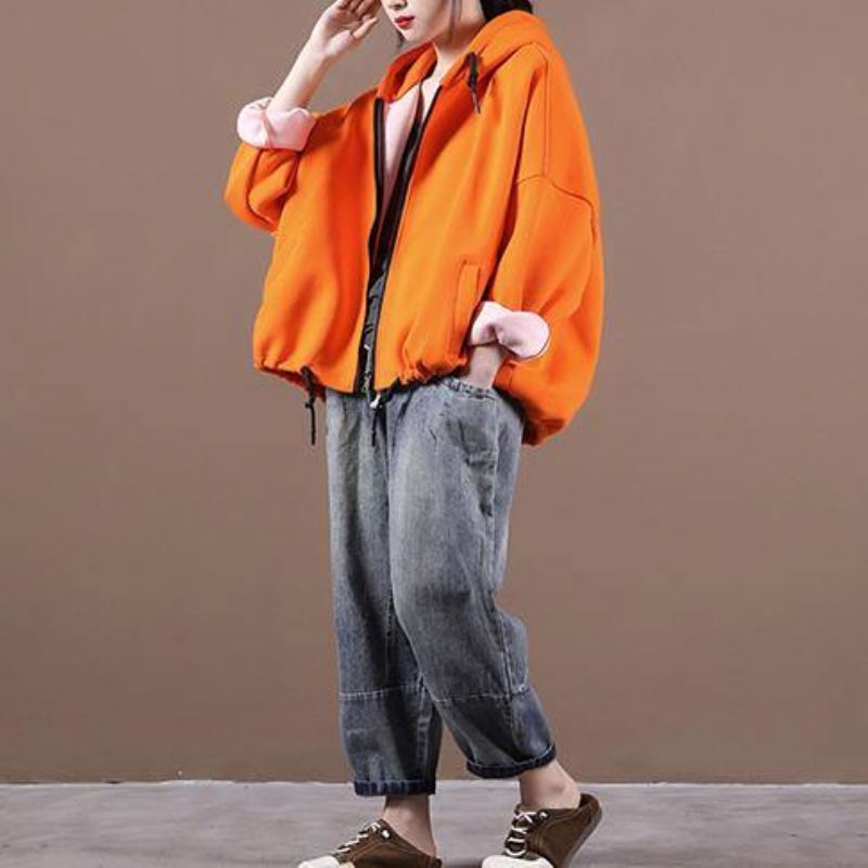 Gjør-det-selv Hette Snøring Plus Size Høstklær For Kvinner Gule Damefrakker