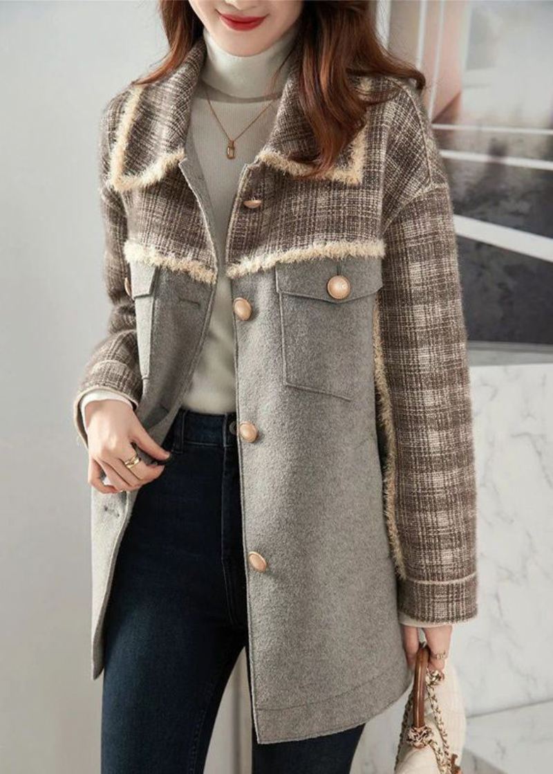 Løs Grå Peter Pan Krage Knappelommer Ullfrakk Vinter