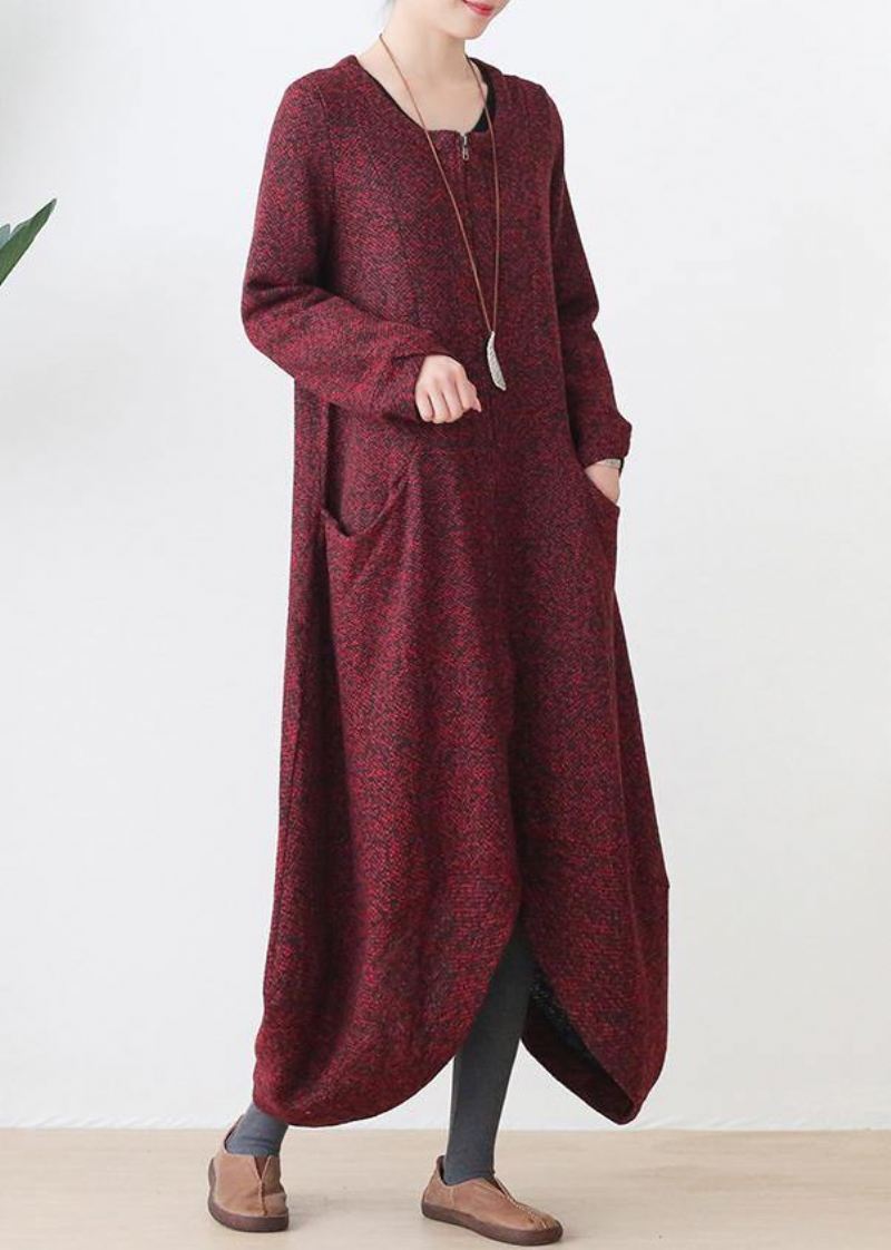Mote Oversize Mellomlang Kåpe Vinterfrakker Rød V-hals Asymmetriske Ulljakker