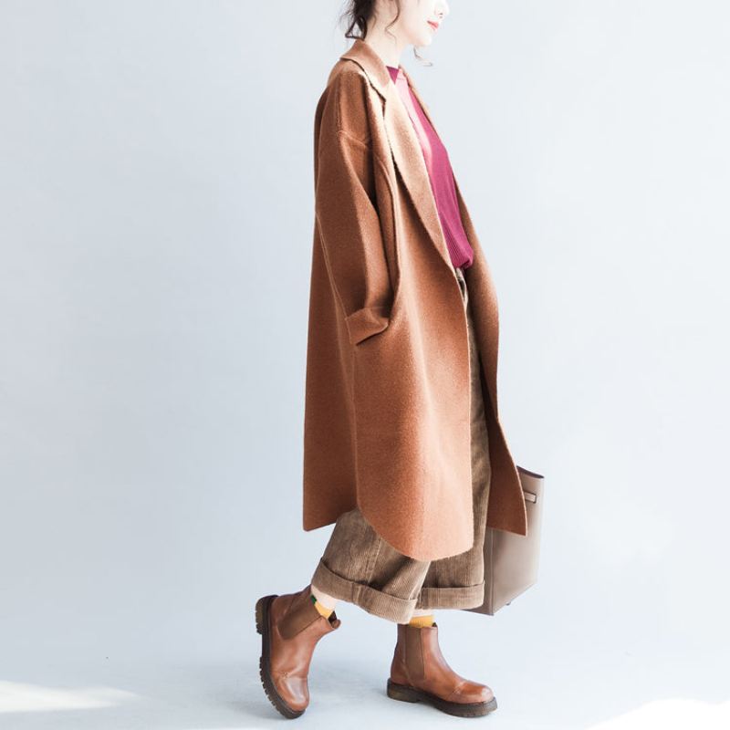 Mursteinsrøde Lange Ullkåper Oversized Vinter Cardigans Jakker