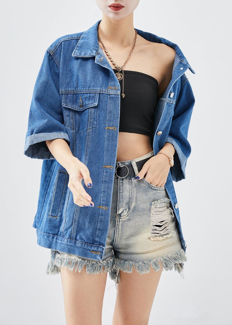Plus Size Denim Blue Oversized Cotton Coats Half Sleeve