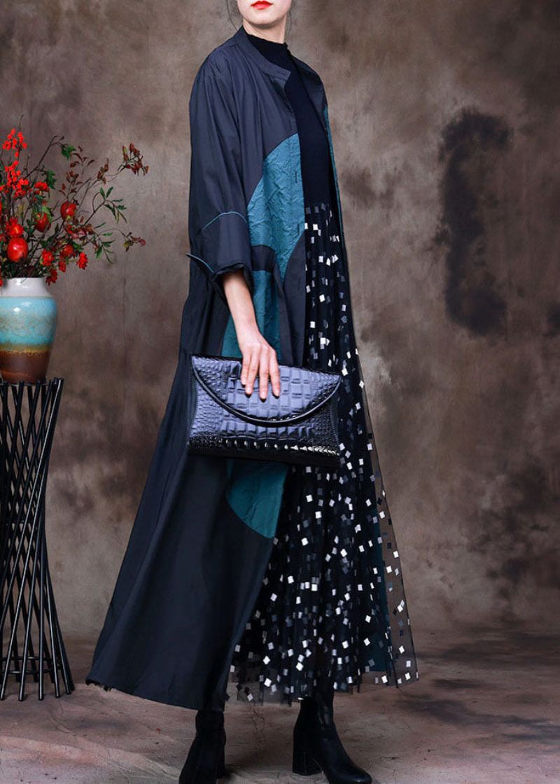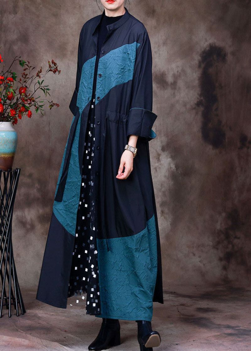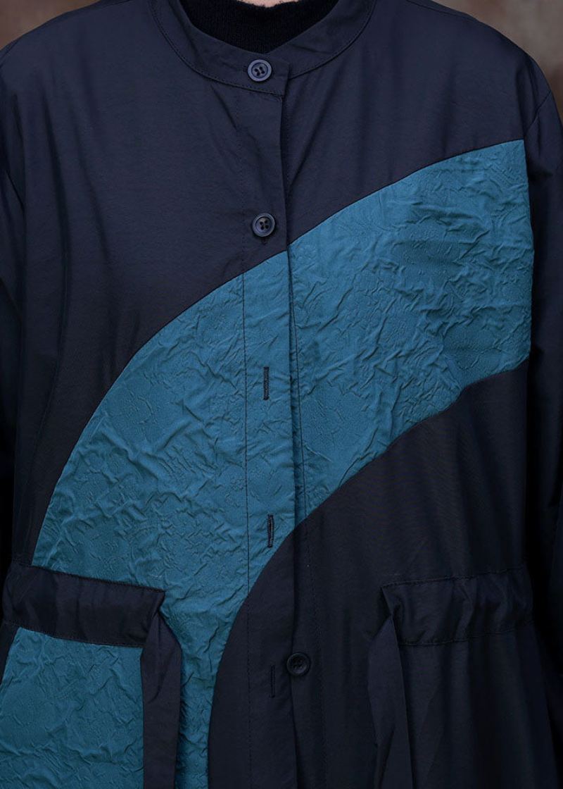 Style Colorblock Stativ Kragelommer Patchwork Snøring Spandex Coats Langermet